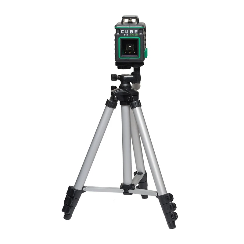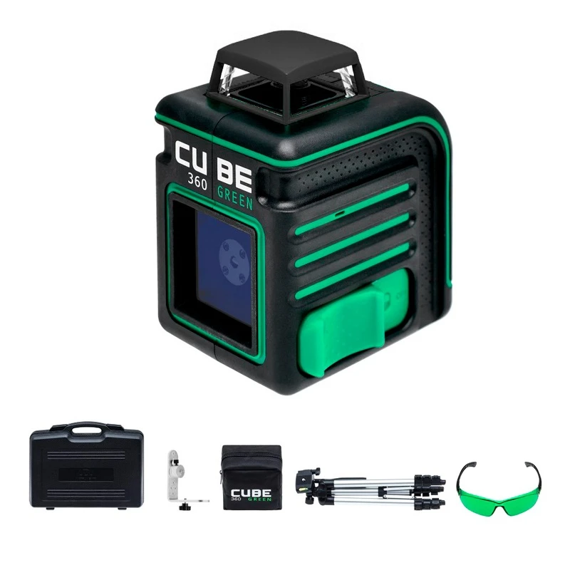ADA CUBE 360 GREEN Ultimate Edition можно установить на штатив или настенное крепление с помощью резьбы 1/4" сбоку и снизу корпуса. Штатив высотой 35-110 см есть в комплекте. Уровень с защитой степени IP 54 не боится пыли, грязи и воды. Это позволяет использовать его при различных погодных условиях или в запыленных помещениях. Также прибор защищен резиновыми накладками, которые смягчают удары при случайном падении с высоты.