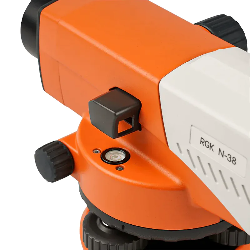Нивелир RGK N-38 удобно настраивать с помощью наводящих винтов с плавным ходом. Для выравнивания горизонта встроен круглый пузырьковый уровень с зеркальцем для наблюдения. За счет просветляющего покрытия линзы изображение хорошо различимо в сумерках, при слабом освещении или пасмурной погоде. Оптика сохраняет прозрачность даже на морозе до -40 градусов.