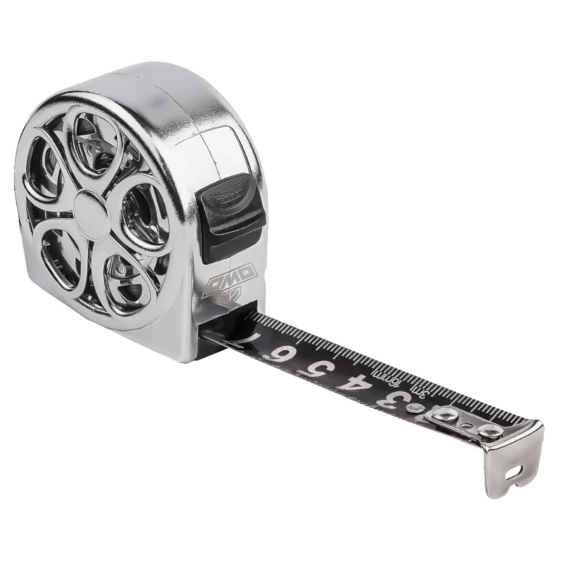 Благодаря компактному размеру, рулеткой AMO R803 можно пользоваться одной рукой. При этом ползковый стопор, позволяющий фиксировать ленту в выдвинутом положении, просто перемещается одним движением большого пальца. Г-образная скоба на конце мерной ленты выступает над плоскостью корпуса, обеспечивая простую фиксацию начала отсчетов измерителя на внешних углах. Для удержания края полотна при зацепе за головку шурупа или гвоздя на перпендикулярной части скобы предусмотрена соответствующая прорезь.
