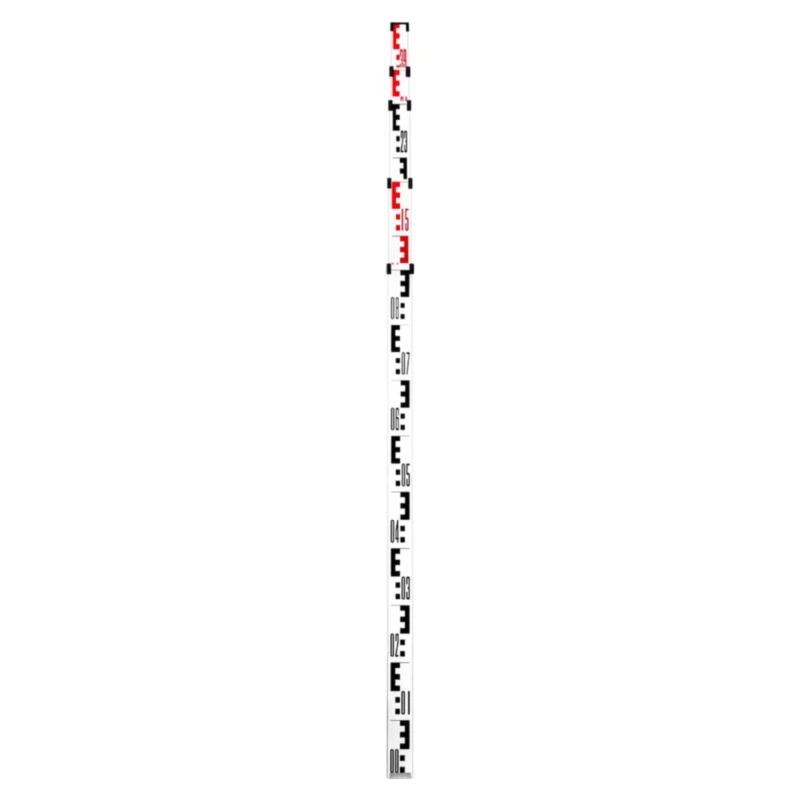 Рейка телескопическая AMO S45, 4 м 5 сложений предназначена для использования с нивелирами оптического и лазерного типа, для чего оснащается традиционной шашечной и миллиметровой шкалами на лицевой и тыльной сторонах. Инструмент изготовлен из алюминиевого сплава с анодированным покрытием и снабжен стальной пяткой на нижнем торце, устойчивой к истиранию. Благодаря компактному размеру в сложенном состоянии, а также сравнительно небольшому весу, данное изделие удобно использовать на выездных работах и при прокладке длинных нивелирных ходов.