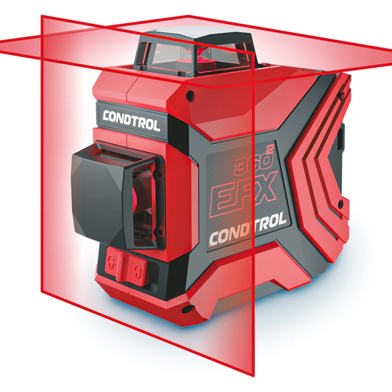 Лазерный нивелир Condtrol EFX360-2 проецирует две плоскости, пересекающиеся под прямым углом. Развертка 360° избавляет от необходимости переставлять прибор. Рабочий диапазон достигает 20 м, а при использовании детектора — 40 м. Разметка зеленого цвета хорошо различима даже при ярком освещении и на большом расстоянии от прибора.