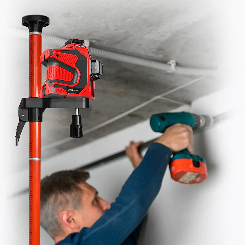 Крепления двух видов пригодятся для фиксации прибора на строительных конструкциях. Две резьбовых отверстия разного размера позволяют установить лазерный уровень Condtrol Omniliner G3D Kit на любой подходящий штатив для точной и удобной разметки.