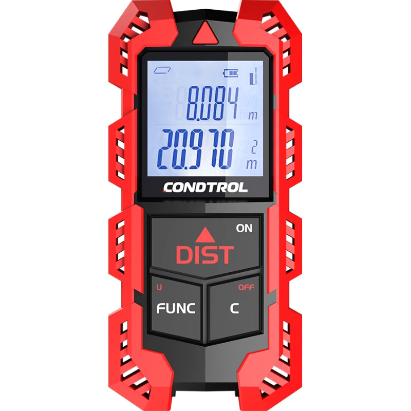CONDTROL Traccer 40 – ультракомпактный лазерный дальномер с литий-ионным перезаряжаемым аккумулятором. Подходит для эксплуатации внутри помещений. Показывает точные результаты измерений на расстоянии от 0,03 до 40 метров и не уступает по функционалу полноразмерным лазерным рулеткам.