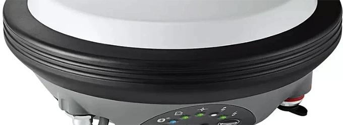 GS10 – профессиональный приемник с выносной антенной, двумя отсеками для аккумуляторов и множеством коммуникационных портов. Может использоваться как базовая станция или ровер.