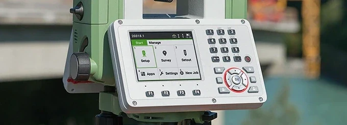 Управление выполняется с помощью буквенно-цифровых клавиатур, расположенных с обеих сторон прибора. Результаты выводятся на цветные сенсорные дисплеи с подсветкой и регистрируются во внутренней памяти 2 Гб или внешнем накопителе объемом до 8 Гб. Установленное в модели Leica TS07 R500 1" Arctic программное обеспечение FlexField поддерживает основные геодезические вычисления: разбивку, съемку, установку станции, расчет площади и прочие.