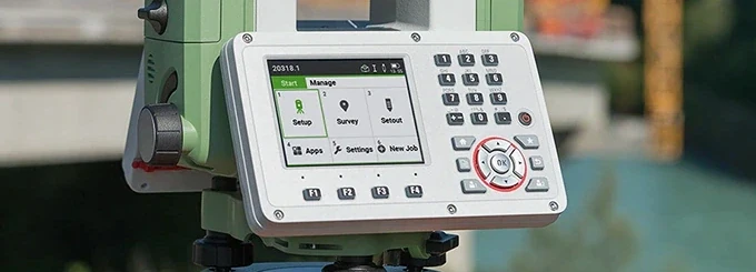 Управление выполняется с помощью буквенно-цифровых клавиатур, расположенных с обеих сторон прибора. Результаты выводятся на цветные сенсорные дисплеи с подсветкой и регистрируются во внутренней памяти 2 Гб или внешнем накопителе объемом до 8 Гб. Установленное в модели Leica TS07 R500 5" AutoHeight программное обеспечение FlexField поддерживает основные геодезические вычисления: разбивку, съемку, установку станции, расчет площади и прочие.