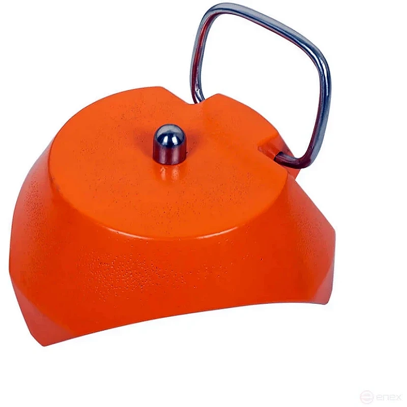 RGK GB7 полностью отлит из металла и весит 6,7 кг, что способствует его устойчивости даже на рыхлых грунтах. Благодаря яркому оранжевому цвету башмак отлично видно на местности.