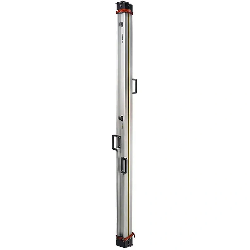 Конструкция реек продумана до мелочей. Ременные крепления позволяют надежно фиксировать их попарно, что упрощает укладку в кейс. Две складные ручки обеспечивают удобный захват во время работы, а в сложенном состоянии уменьшают габариты инструмента. Для контроля вертикальности при измерениях рейки оборудованы двумя круглыми уровнями, установленными в защищенных углублениях. Это исключает их случайное повреждение и позволяет точно позиционировать инструмент в любых рабочих условиях.