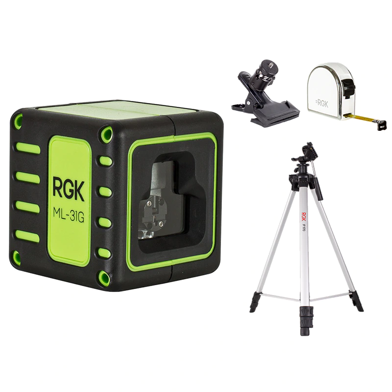 Лазерный уровень RGK ML-31G со штативом F170, кронштейном K-5 и рулеткой RM3 752824
