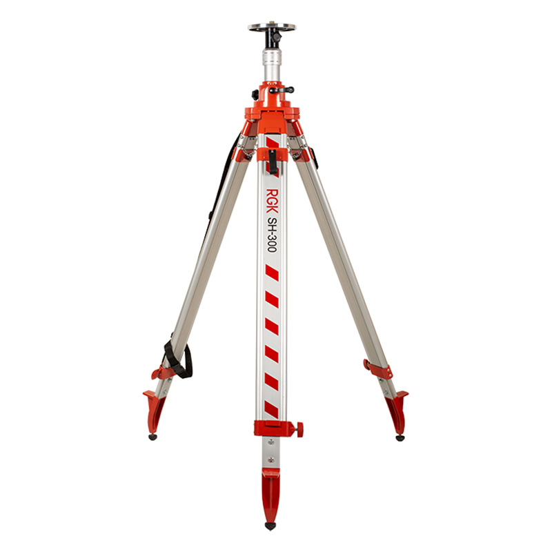 Телескопические стойки оборудованы комбинированной системой фиксации винт+клипса, благодаря чему подготовка геодезического штатива к работе занимает считанные секунды и обеспечивается надежность. Специальные цепи ограничивают ход ножек в безопасных пределах, а противоскользящие накладки и прочные упоры помогают крепко установить RGK SH-300 как на рыхлых, так и на гладких поверхностях.