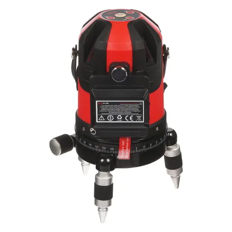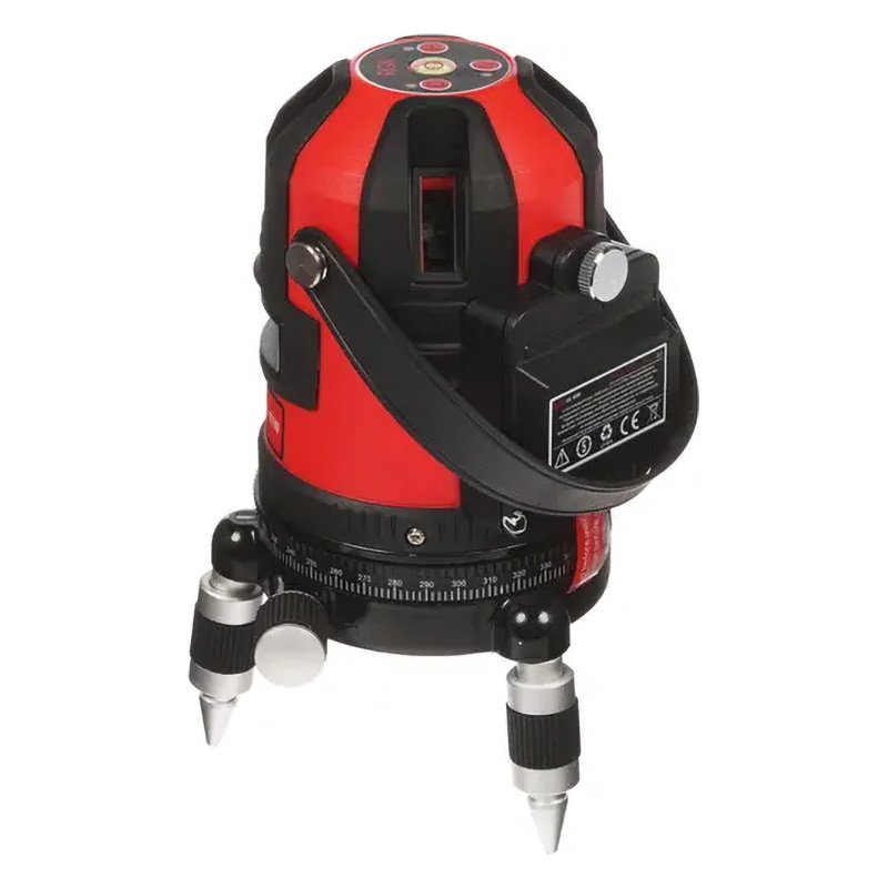Корпус лазерного нивелира поворачивается на 360 ° при помощи 2 винтов точной наводки. Ориентироваться можно по градуированному горизонтальному лимбу. Это позволит перенести лазерные проекции на другую стену, не переставляя при этом лазерного нивелира.